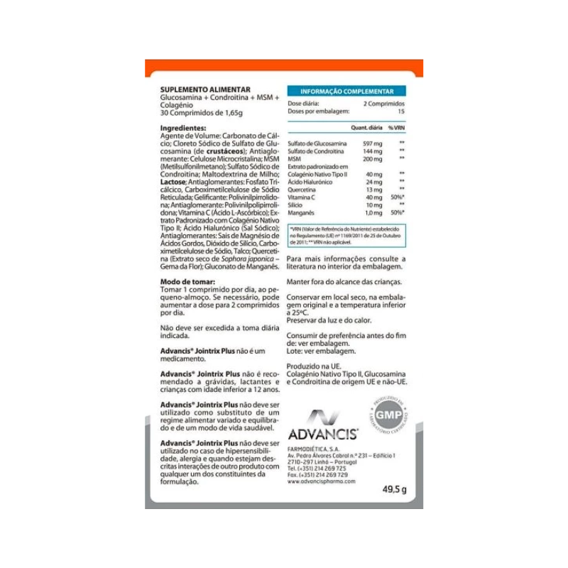 Home Músculos - Ossos - Articulações Advancis Jointrix Plus 60 comprimidos Advancis Jointrix Plus 60 comprimidos SKU: 7254359 33,83 € Desconto de %. IVA incluído. Comprar Contactar Adicionar à wishlist Suplemento alimentar para o bem-estar ósseo e articular, manutenção óssea e manutenção das cartilagens. Marca Advancis Características Partilhar