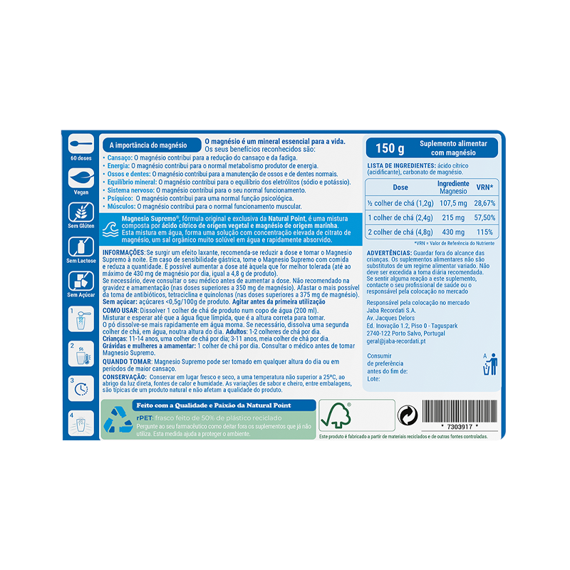Home Multivitamínicos Magnesio Supremo Pó 150g Magnesio Supremo Pó 150g SKU: 7303917 13,78 € Desconto de %. IVA incluído. Comprar Contactar Adicionar à wishlist Suplemento alimentar que fornece citrato de magnésio em forma orgânica altamente solúvel, com alta velocidade de absorção. Marca Magnesio Supremo Características Partilhar