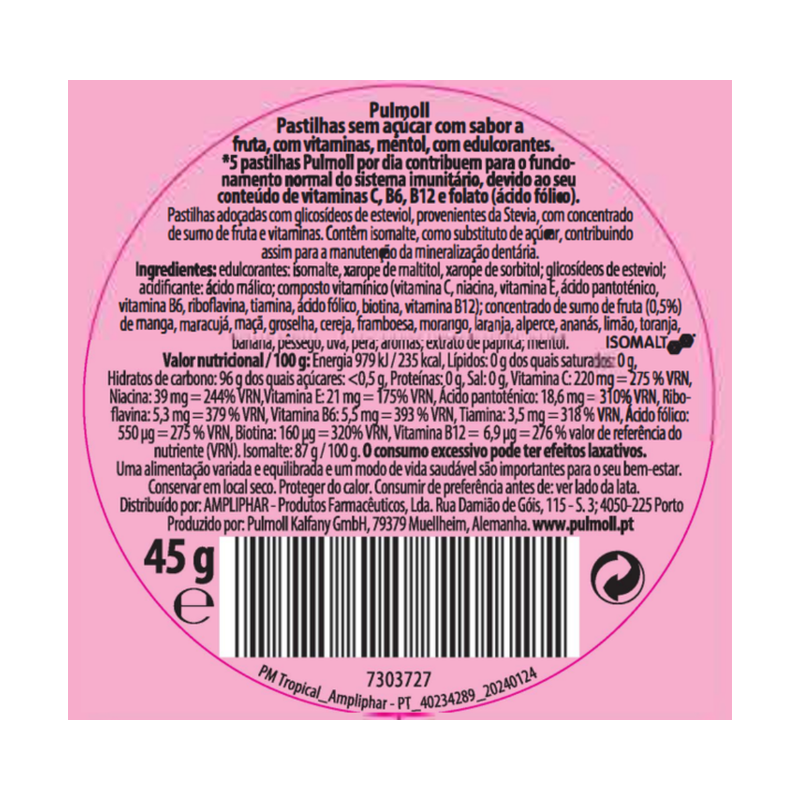 Home Ouvidos-Garganta-Nariz Pulmoll Rebuçados Tropical 45g Pulmoll Rebuçados Tropical 45g SKU: 7303727 2,98 € Desconto de %. IVA incluído. Comprar Contactar Adicionar à wishlist Suplemento alimentar em forma de rebuçados que suaviza, protege e refresca a boca e a garganta. Marca Pulmoll Características Partilhar